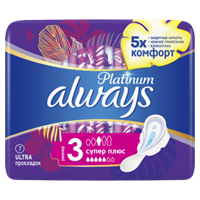 Гигиенические прокладки Always Platinum обеспечивают лучшее сочетание комфорта и защиты среди прокладок Always. Always Platinum более комфортны (по сравнению с Always Ultra) благодаря тысячам микроподушечек и новым, мягким как шелк крылышкам. Они также обеспечивают лучшую защиту (по сравнению с Always Ultra) благодаря защитным боковым барьерам и ультравпитывающему внутреннему слою, который запирает влагу внутри.