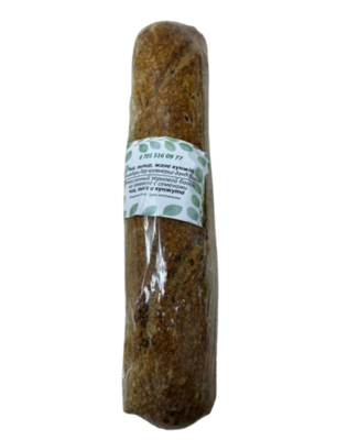 Крафтовый багет из нашей пекарни с максимальной пользой. Выпечен на натуральной закваске (без дрожжей) из смеси муки с добавлением цельных злаков. Обладает потрясающей хрустящей корочкой, сложным вкусом с кислинкой и богат клетчаткой.