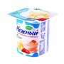 Состав: Обезжиренное молоко, сливки, вода, сахар, глюкозно-фруктозный сироп, загуститель - модифицированный крахмал, сухая молочная сыворотка, фруктовый наполнитель (концентрированный сок банана, концентрированный сок клубники, вода, загуститель - модифицированный крахмал, ароматизаторы "клубника" и "банан" идентичные натуральным, красители: кармин, бета-каротин, регуляторы кислотности: цитрат натрия, лимонная кислота), загуститель - пищевой желатин, лактоза, с использованием закваски. Изготовлено с использованием сухой молочной сыворотки.