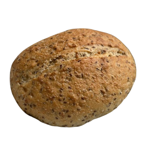 Настоящий крафтовый хлеб из нашей пекарни. Выпечен из пшеничной муки по технологии долгого брожения на закваске, что придает ему невероятный аромат и хрустящую "ремесленную" корочку. "Добавки" могут включать семена, орехи или сухофрукты, делая вкус еще богаче.