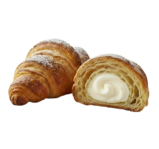 Нежное и полезное сочетание. Хрустящее слоеное тесто идеально дополняет мягкая, слегка сладкая творожная начинка. Этот круассан — прекрасный источник белка и кальция для начала дня.