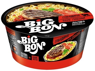 Лапша Биг-бон в чашке с говядиной + соус томатный с базиликом 85гр.
