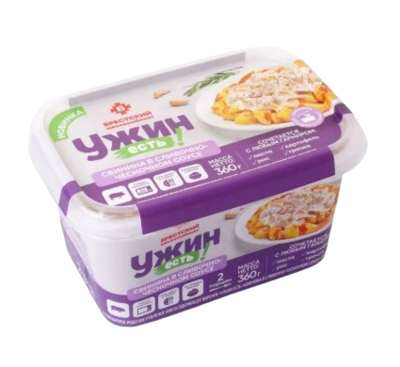 Пикантный и насыщенный вкус. Мягкая свинина в нежном сливочном соусе с добавлением чеснока, который придает блюду аппетитный аромат. Полностью готовое блюдо: разогрей и съешь.