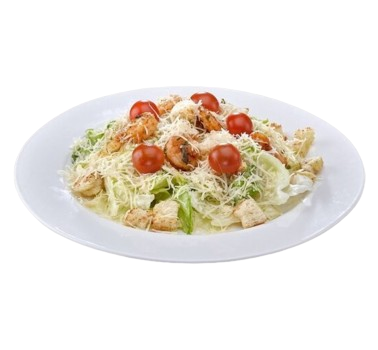 Любимый салат в классическом исполнении. Сочное куриное филе, свежие листья салата и хрустящие пшеничные гренки под "снегом" из тертого пармезана. Сытно, вкусно и всегда актуально.