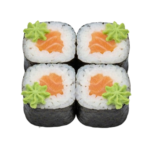 Самая популярная классика. Мини-ролл с начинкой из свежего атлантического лосося, завернутого в рис и нори. Идеальный выбор для легкого перекуса. Обратите внимание: васаби, имбирь, соевый соус и палочки не входят в стоимость заказа.