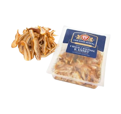 Состав: Уши свиные, вода питьевая, соль, пряности? чеснок, фиксатор окраски Е250 Упаковка: Упаковано в защитной атмосфере, порция 200 г Срок годности и условия хранения: Годен в течение 30 суток при упаковке в защитной атмосфере при температуре хранения от 2 до 6°С