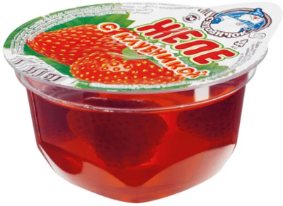Желе Снеговичок "Клубника", 0%, 150 гСостав: вода, сахар-песок, желатин, пищевые добавки: стабилизатор, агар-агар, регулятор кислотности лимонная кислота, консервант сорбат калия, аскорбиновая кислота, ароматизатор идентичный натуральному "клубника".Пищевая ценность на 100 г:белки – 1,5 г; жиры – 0,0 г; углеводы – 12,0 г.Энергетическая ценность: 50 ккал.Хранить: при t от +2'C до +6'C и относительной влажности.
