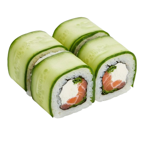 Свежесть северных морей. Сочный краб-микс и ломтики лосося в сочетании с хрустящим огурцом и свежим листом салата. Легкий и вкусный ролл. Обратите внимание: васаби, имбирь, соевый соус и палочки не входят в стоимость заказа.