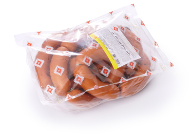 Состав: вода, мясо механической обвалки цыпленка бройлера, свинина, мясо цыпленка-бройлера, говядина, жир-сырец свиной, мясо индейки, меланж, сыворотка молочная сухая, кожа цыпленка-бройлера, комплексная пищевая добавка для мясной продукции с йодом, экстракты специй и пряностей.