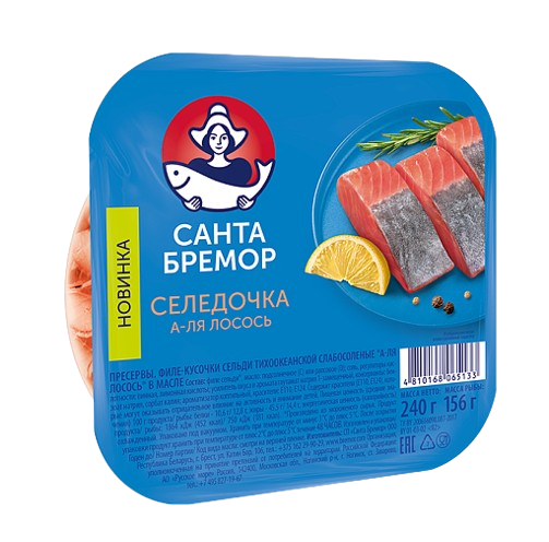 Филе сельди Санта Бремор А-ля лосось слобосоленое в масле кусочки 240гр