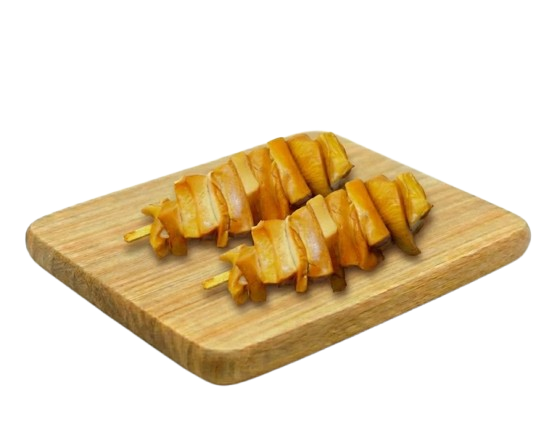 Кальмар горячего копчения на шпажке — это удобный порционный формат. Крупные куски кальмара, нанизанные на шпажку, коптятся до золотистого цвета. Мягкое, сочное мясо с ароматом дымка.