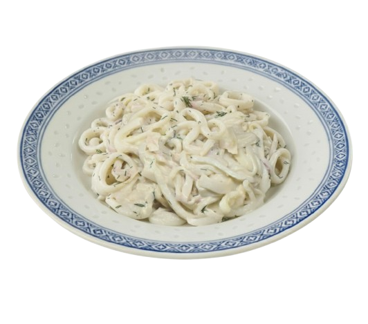 Кальмар в майонезе — это готовая закуска на развес. Мягкая соломка или кусочки кальмара в густом и нежном майонезном соусе. Обладает насыщенным и сбалансированным вкусом. Отлично подходит для быстрого перекуса.