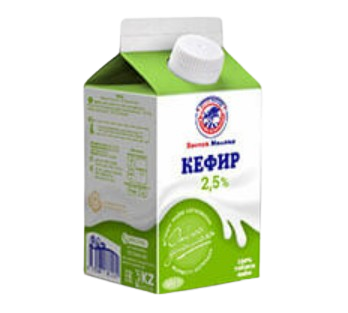 Кефир 2,5% Упаковка пюр-пак, масса нетто 500г. Пищевая ценность в 100 г продукта: Жир - 2,5 г, белок – 3 г, углеводы – 3,9 г; Энергетическая ценность (калорийность) – 222 кДж (53 ккал); До и после вскрытия упаковки продукт хранить при температуре (4±2) °С