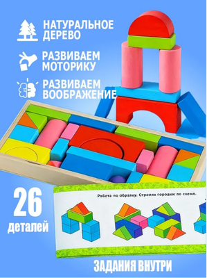 Деревянный конструктор "Строим город", 26 деталей, схемы для игры в наборе