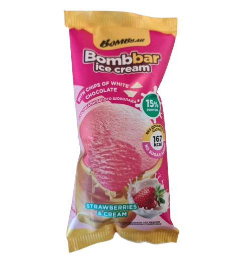 Мороженое BOMBBAR молочное протеиновое Клубника с белой шоколадной крошкой ваф.ст. 90гр