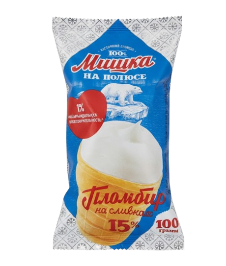 Мороженое Мишка на полюсе Пломбир ванильный — это большая порция (100 г) настоящего пломбира, изготовленного по ГОСТу из свежих сливок.
