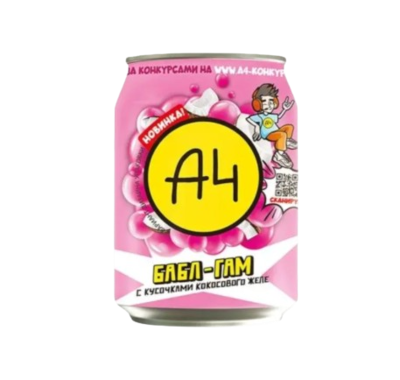 Напиток А4 со вкусом Бабл Гам с кусочками кокосового желе пл.бан 240мл