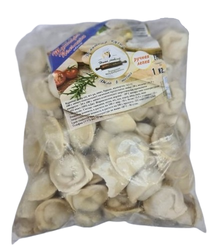 Состав: говядина, мука пшеничная в/с, вода питьевая, лук репчатый, масло растительное, соль поваренная пищевая, натуральные специи и пряности.