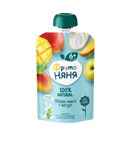 Пюре ФрутоНяня из яблок и манго с йогуртом пауч 90гр