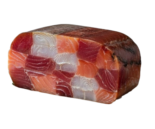 Особенности: Сочетание нескольких видов рыбы, свернутых в рулет.