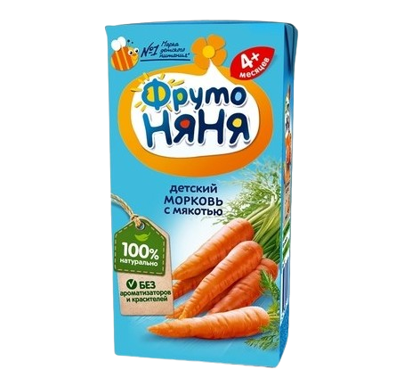 Сок ФрутоНяня "Морковь" с мякотью — это очень полезный продукт, богатый бета-каротином (провитамином А), который важен для зрения и роста. Обладает нежным, сладковатым вкусом и приятной густой консистенцией. Отлично подходит для разнообразия овощного прикорма.