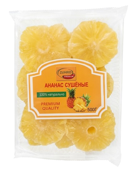 Ананас – уникальный фрукт. При сушке других фруктов теряется много полезных веществ, а ананас содержит их так много, что потеря несущественна. В нем содержится много витаминов А, С, Р и группы В, магния, калия, кальция, фосфора и железа. Из микроэлементов стоит отметить марганец, кобальт, медь, молибден и хром. В ананасах содержится уникальное вещество – бромелайн. Этот фермент способствует расщепление жиров. Стремящиеся похудеть с его помощью могут быстро избавиться от жировой прослойки. Ананасы являются рекордсменами по содержанию органического кремния. Его дневная доза содержится всего лишь в 30 граммах свежего фрукта. Он важен для здоровья волос и ногтей, укрепляет стенки сосудов, улучшает состояние суставов. Опасаться его передозировки не следует. Избыточный кремний просто не усвоится.