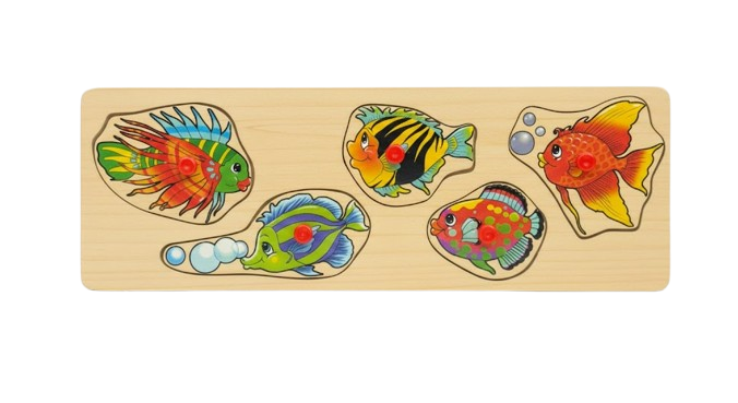 Игра развивающая Вставные рыбки, дерево, 5шт, 1-3г