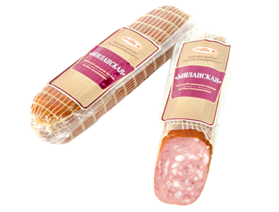 мясо цыпленка-бройлера, говядина, шпик, вода питьевая, нитритно-посолочная смесь (соль поваренная пищевая, фиксатор окраски – нитрит натрия), стабилизатор (пирофосфат), регулятор кислотности (аскорбиновая кислота), усилитель вкуса (глутамат натрия), специи (перец, кориандр), краситель (гемоглобин, кармин).