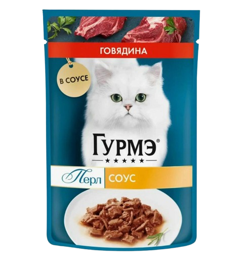 Корм для кошек Гурмэ Перл говядина соус 75гр