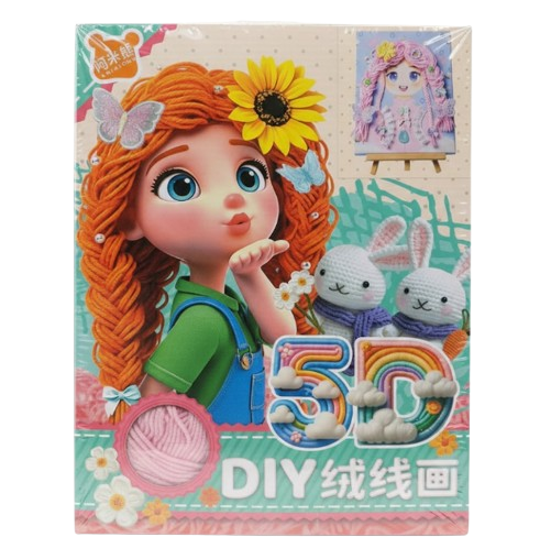 Уникальный 5D набор для создания объемной картины — это новый уровень детского творчества! Ребенку предстоит своими руками сделать куколке объемные волосы из пряжи. Этот оригинальный процесс превосходно развивает мелкую моторику, нестандартное мышление и раскрывает творческий потенциал создателя.