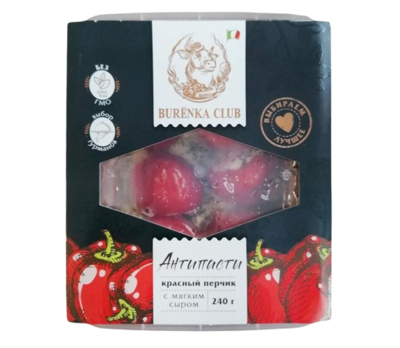 Антипасти Burenka Club красный перчик фарш. мягким сливочным сыром в масле 260гр