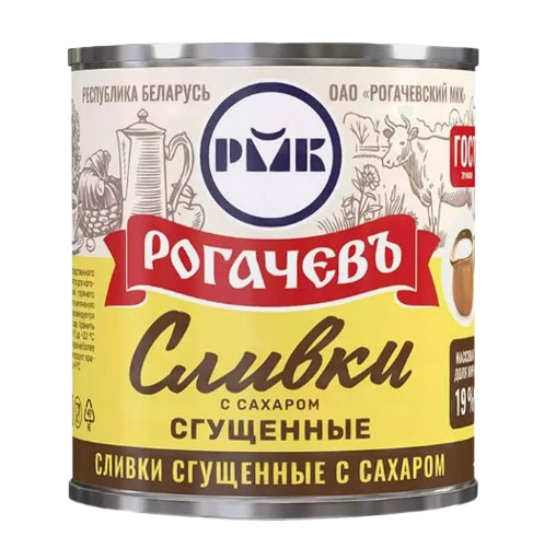Сливки сгущенные с сахаром Рогачев 19% 360гр